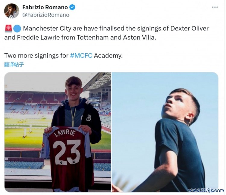 罗马诺流露,曼城还是签下了两位小将,折柳是热刺16岁中场德克斯特-奥利弗、维拉16岁中卫弗雷迪-劳里,这两名球员将加入曼城青训梯队。