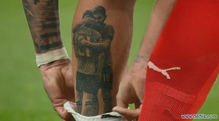 内维斯身着的恰是若塔此前的21号球衣,而且他还在小腿上文着一个若塔的文身。