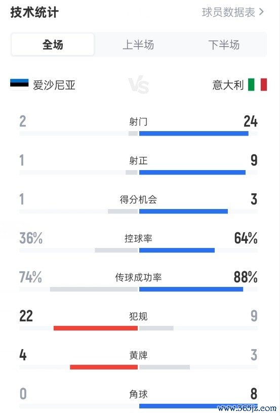10月12日讯 世初赛欧洲区小组赛I组第7轮,爱沙尼亚1-3不敌意大利。