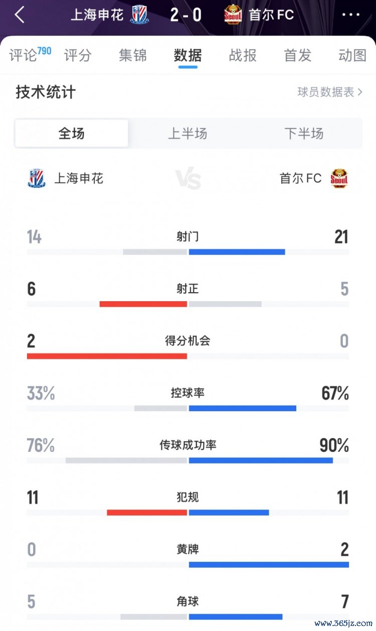 全场数据方面,尽管申花多项数据过期,但把捏契机的才调优于敌手,全场14脚射门6次射正,况兼创造了2次得分契机。