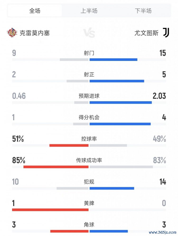 11月2日讯 意甲第10轮比赛,尤文客场2-1打败克雷莫内塞。