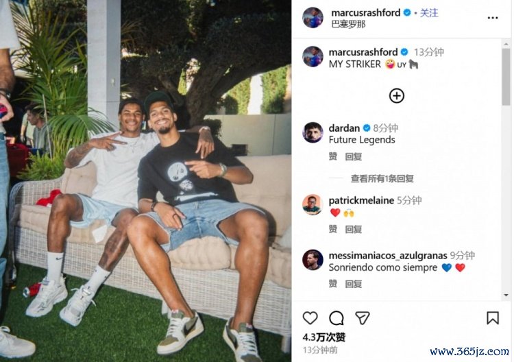 11月12日讯 从曼联租出加盟巴萨后,拉什福德展示出了十分出色的情状。在酬酢媒体上,拉什福德晒出了我方和队友阿劳霍的合照,并嘲谑说念:我的弓手。