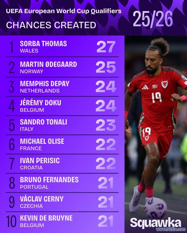 11月20日讯 本届世欧预小组赛一经告一段落,squakwa也统计了本届赛事创造契机情况,多位名将在列。