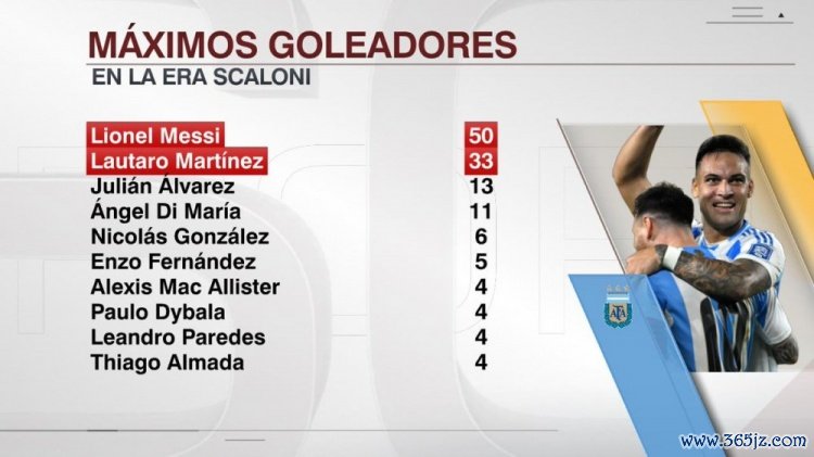 据ESPN统计,斯卡洛尼抓教以来,梅西打进50球阿根廷队内最多,劳塔罗攻入33球第二多。