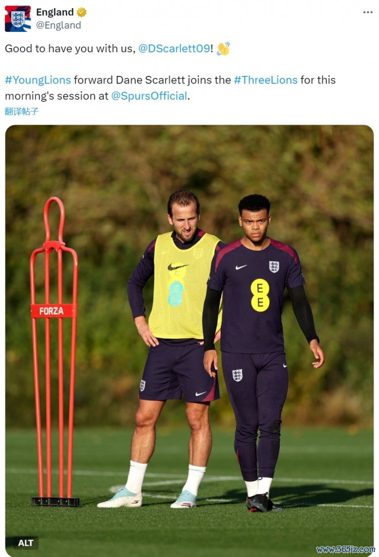 英格兰队官方证据,英格兰后生队球员、热刺21岁时尚斯卡列特插足球队今天上昼的测验。