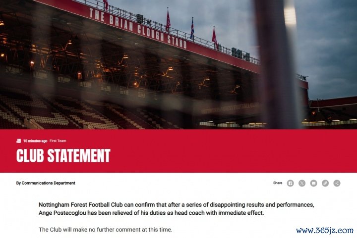 诺丁汉丛林足球俱乐部厚爱秘书,鉴于近期球队战绩与弘扬握续低迷,主指示波斯特科格鲁即刻起排除职务。