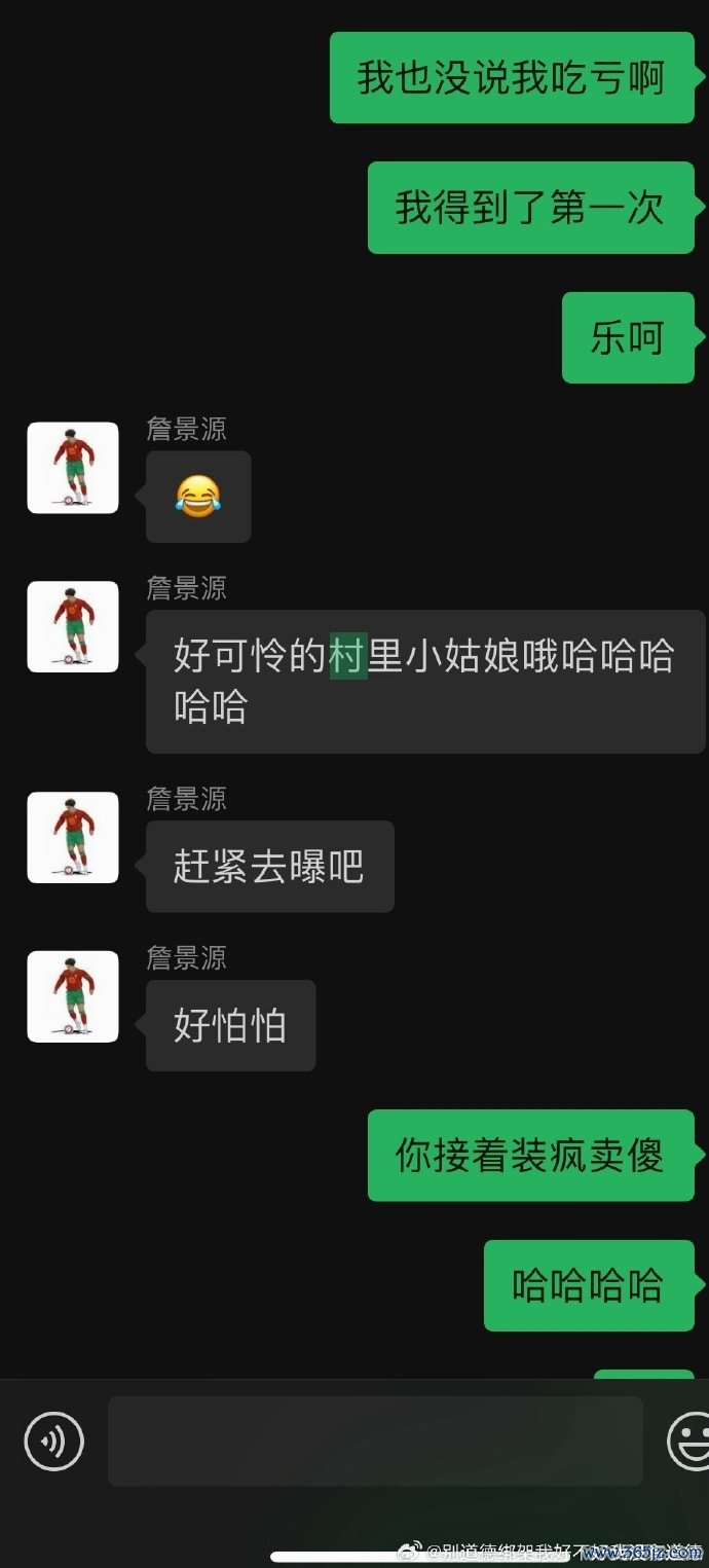 微博账号为“别谈德打单我好不好我莫得谈德”的网友发文,举报U15国少队员詹景源改年事,期骗感情与其他东谈主乱搞关系。