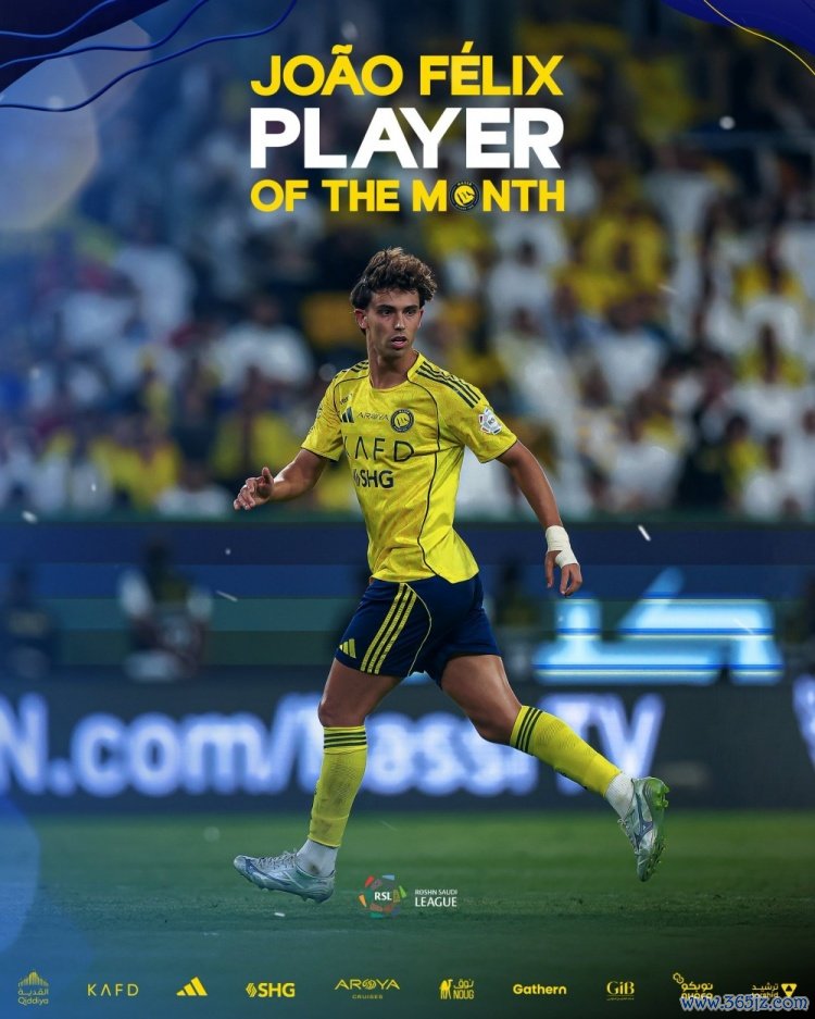 10月1日讯 官方音讯,利雅得收效前卫菲利克斯当选沙特联赛9月最好球员。