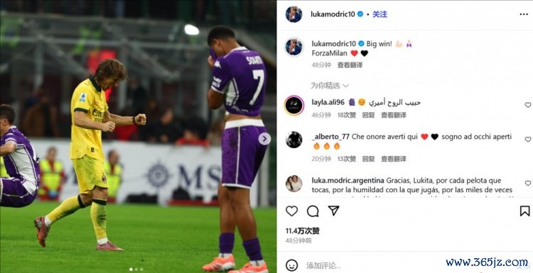 莫德里奇晒出了我方的赛场照,配文写说念:“伟大的成效!Forza Milan。”