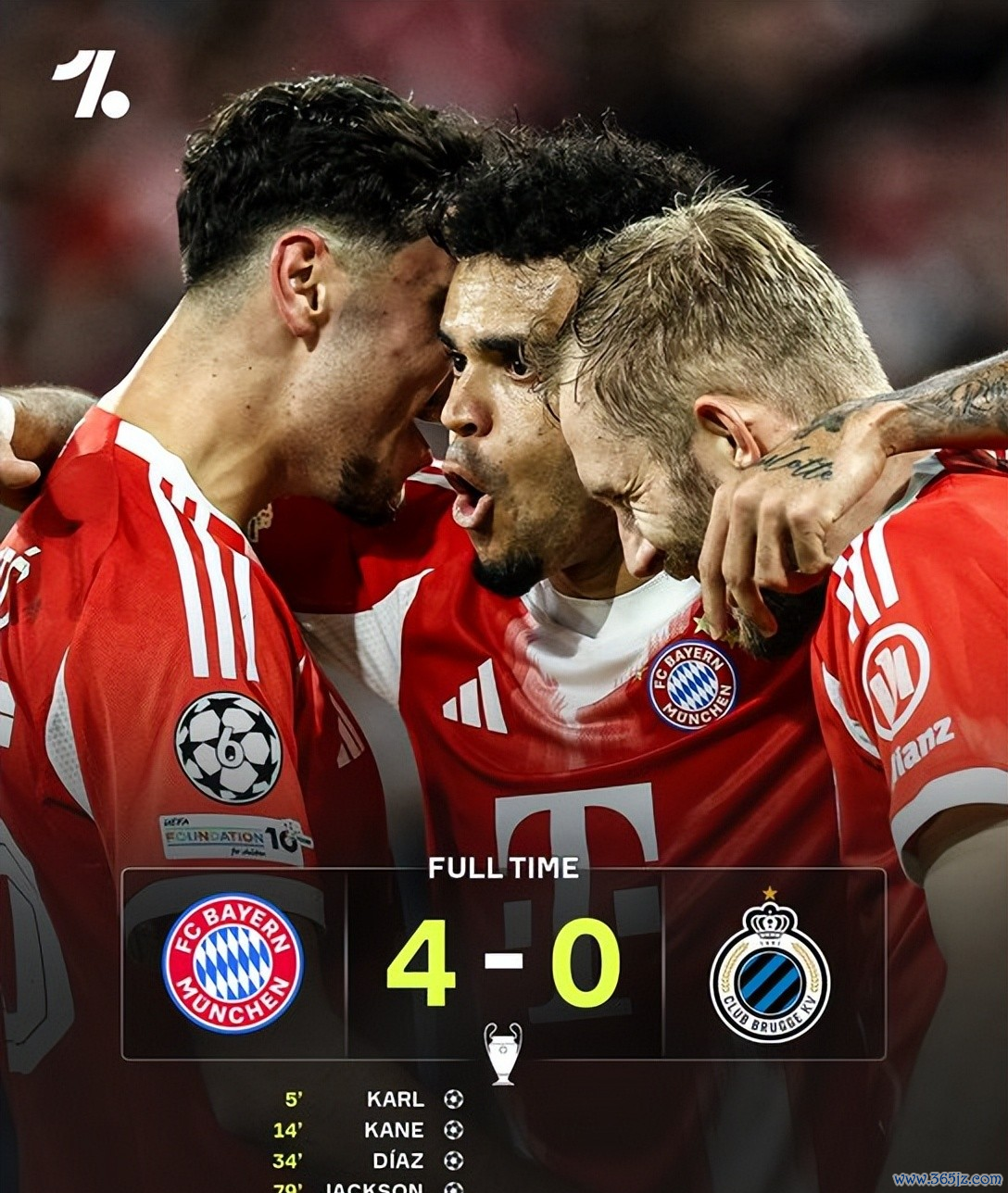最终,拜仁以主场4球的上风轻取敌手的同期,也拿到了本赛季欧冠联赛阶段的3连胜。