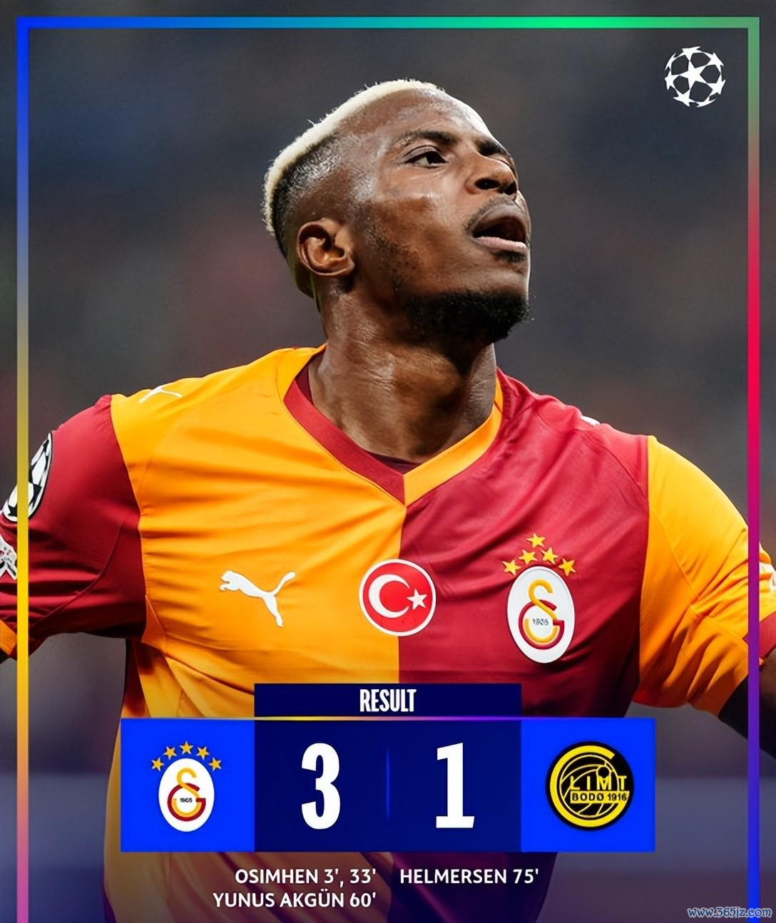 依靠奥斯梅恩的半场梅开二度和阿克金的进球,尽管赫尔默森在第75分钟扳回一球,但土超球队依旧凭借前60分钟的3粒进球,最终主场3-1打败敌手全取三分。