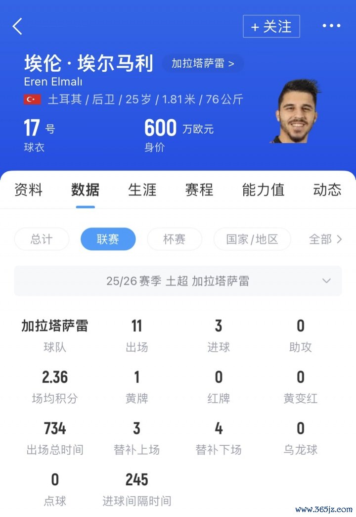 埃尔马利现年25岁,司职左后卫,身价600万欧,已代表土耳其国度队出场过20次。在9月、10月的国外比赛日历间,土耳其4场比赛中他三次首发出战。