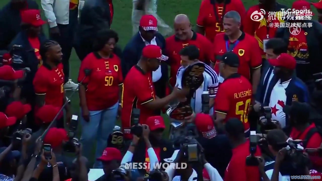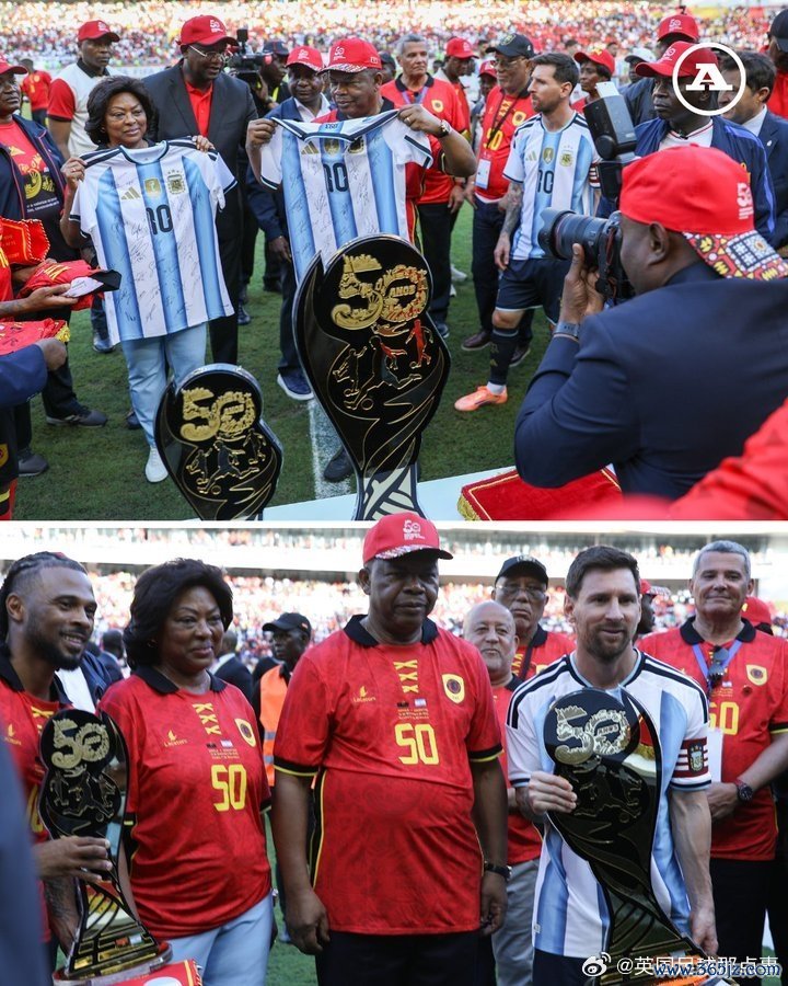 阿根廷与安哥拉比赛前,梅西将球衣赠予安哥拉总统,总统回赠他一座缅念念安哥拉孤独50周年的至极奖杯。