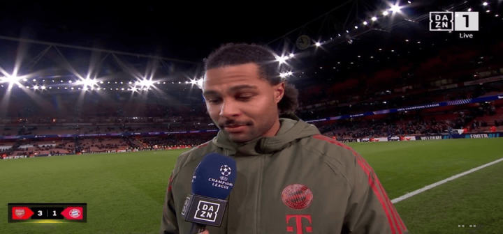 虎扑11月27日讯本轮欧冠焦点大战,阿森纳3-1投诚拜仁。赛后,拜仁前卫格纳布里以及后卫塔也接纳了媒体采访谈到了我方对本场比赛成见。