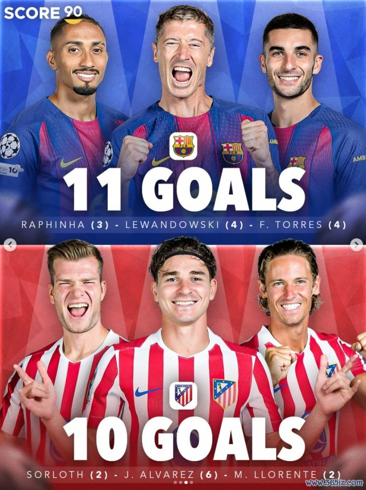 莱万4球、拉菲尼亚3球、费兰4球