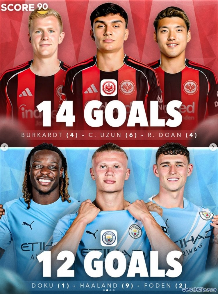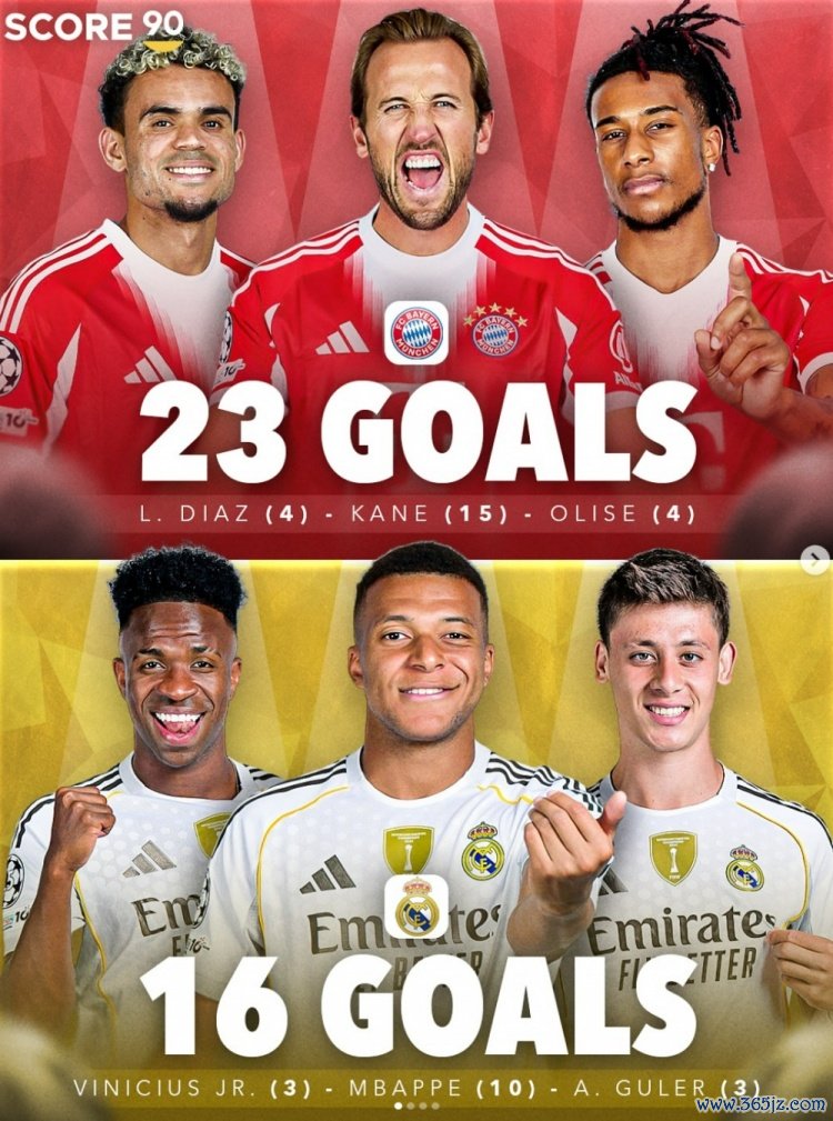9月30日讯 Score90清点了五大联赛球队三东谈主组本赛季当今在各项赛事进球榜,其中拜仁三将共打进23球居首,具体如下: