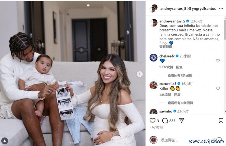 10月17日讯 切尔西中场安德烈-桑托斯更新社媒动态,文告配头怀上二胎。