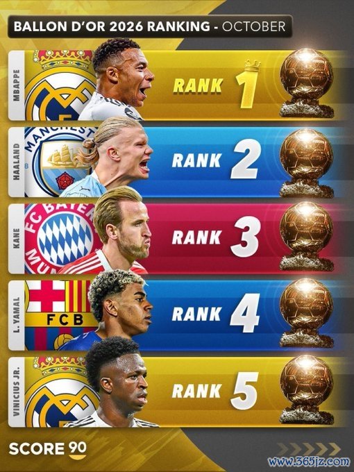 > 👀外媒发布2026年金球奖首期实力名次:姆巴佩居首,亚马尔第四