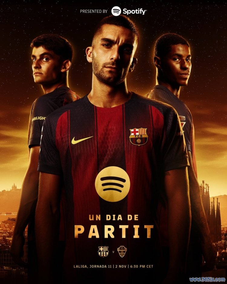 巴萨官方社媒发布了为此役制作的海报,费兰-托雷斯、拉什福德、马丁出镜。