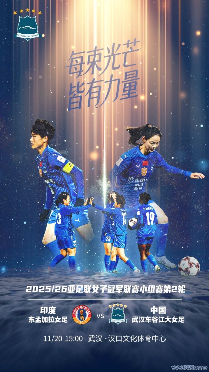 11月20日讯 11月20日15:00,2025/26赛季女足亚冠小组赛第二轮,武汉车谷江大迎战印度球队东孟加拉女足。武汉女足首发公布。